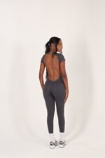 O design de costas abertas adiciona sofisticação e leveza, tornando a peça ideal para treinos, yoga ou composições urbanas com toque premium.