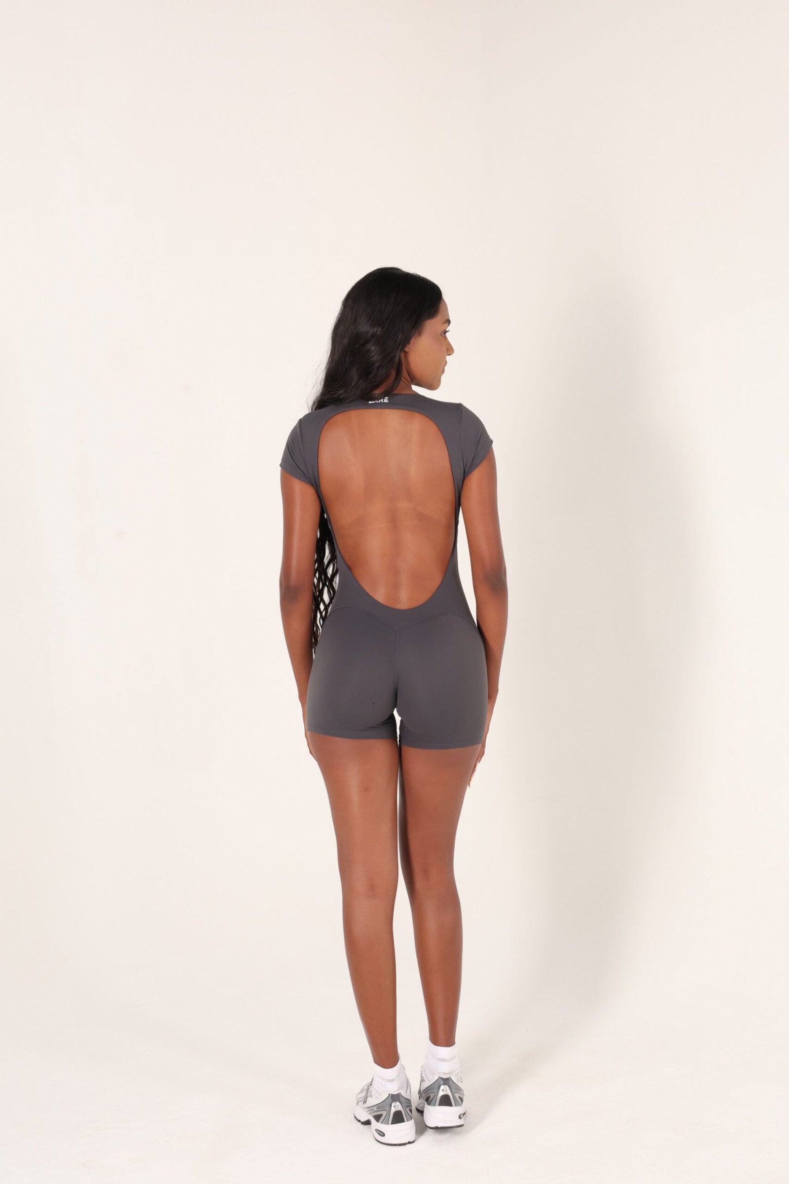 O Macaquinho Impact ZARE traz o mesmo design marcante da versão longa, com modelagem curta e costas abertas que unem elegância e liberdade.